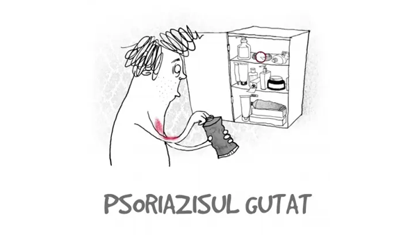Psoriazisul gutat apare cel mai frecvent la copii și tineri și arată ca niște pete mici roșii (cu diametrul de până la 1 cm) pe piele de diferite grade de severitate. Factorul declanșator al acestui tip de psoriazis este de obicei o infecție streptococică. Psoriazisul gutat implică deseori fenomenul Köbner, în care leziunile specifice bolii pot apărea în zonele cu traumatisme minore epidermice.